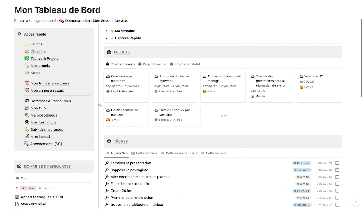 Je l'utilise quotidiennement pour stocker toutes mes notes, idées, articles et les organiser en fonction de mes centres d'intérêt, mais aussi pour gérer mes projets, tâches, objectifs et bien plus encore.