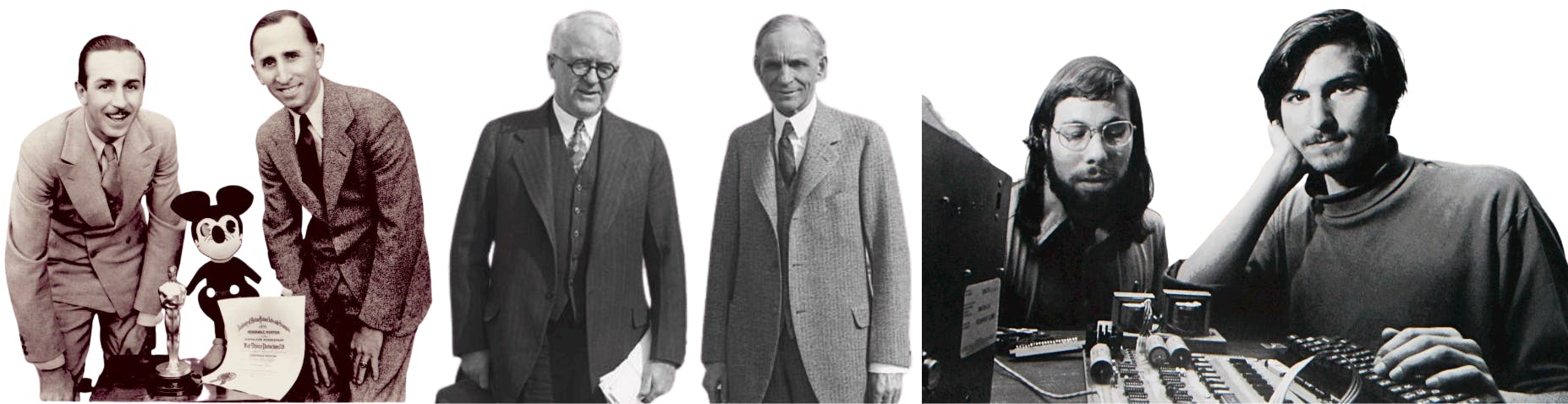Lorsqu’on pense à Walt Disney, Ford et Apple, trois noms viennent en tête : Walt Disney, Henry Ford et Steve Jobs. Pourtant, leurs succès n’auraient pas été le même sans leurs binômes respectifs : Roy Disney (son frère), James Couzens et Steve Wozniak. D’après un article du Harvard Business Review, “seuls 8 % des dirigeants maîtrisent à la fois la stratégie et l’exécution”.